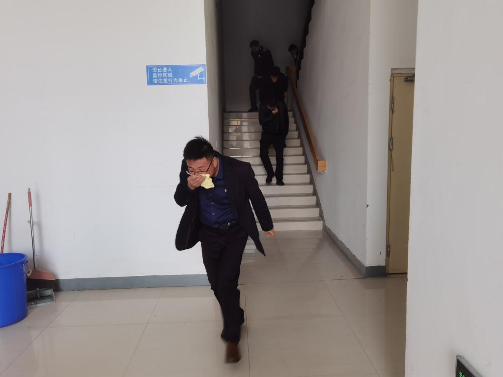 在疏散逃生环节,演练正式启动后,所有人员迅速反应,用湿毛巾捂住口鼻,在疏散引导员的统一指挥下,沿预定路线从楼梯出口低姿、快速、有序撤离到一楼北侧指定地点。演练过程组织严密、响应及时,达到预期疏散效果。